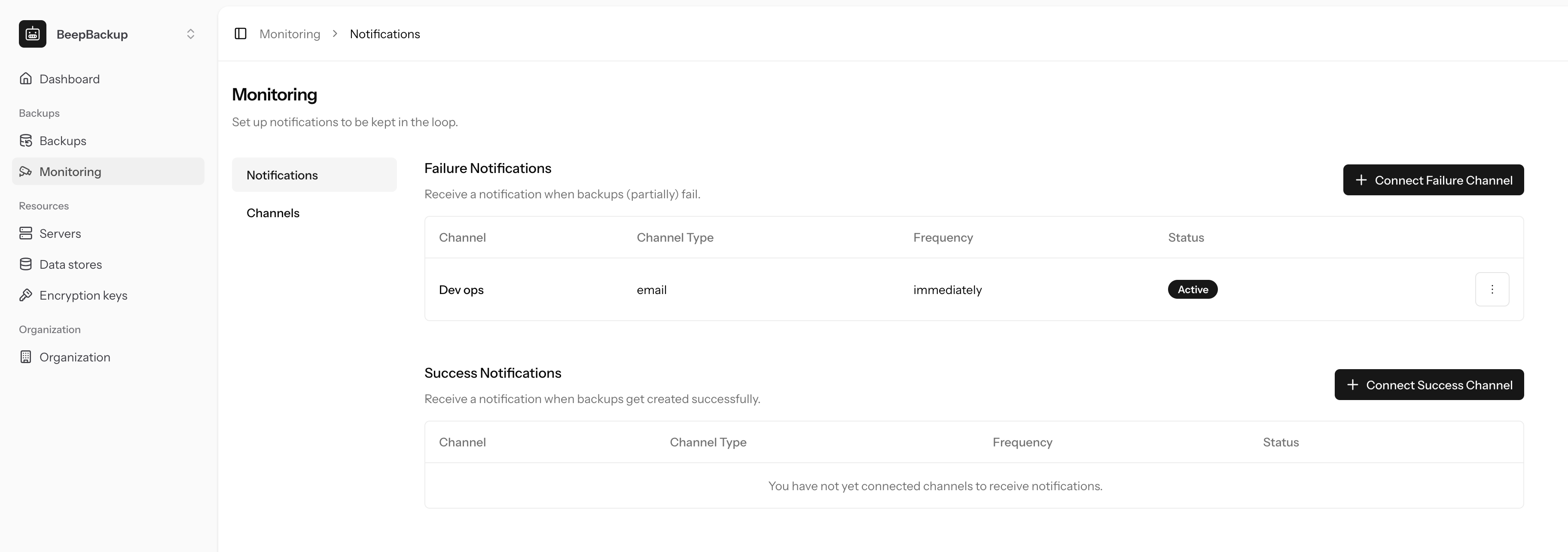 notifications@company.comchannel. - Connect it to failure notifications, on immediate frequency.